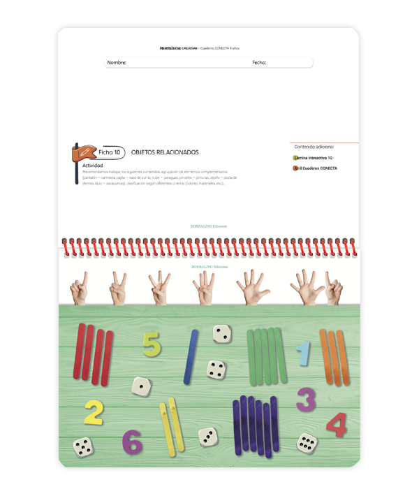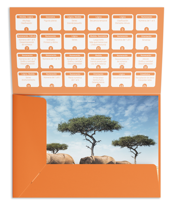 Sus propuestas están enfocadas para trabajar de manera funcional y significativa los aspectos relacionados con el razonamiento lógico-matemático, la numeración, la geometría, el cálculo, las unidades de medida y también una aproximación a la estadística. En esta carpeta también se ofrecen propuestas en forma de retos en las que el alumno deberá dar respuesta utilizando la curiosidad y la intuición. Muchos de los planteamientos deberán solucionarse en grupo, consensuando criterios y soluciones.